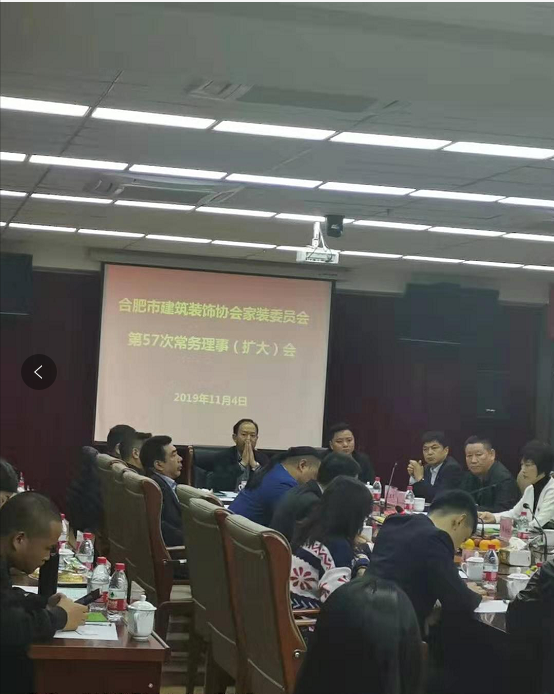 11月4日上午合肥市建筑裝飾協(xié)會家裝委員會第57次常務(wù)理事(擴(kuò)大)會在高新技術(shù)開發(fā)區(qū)大國地板總部舉行。合肥市建筑裝飾協(xié)會會長陶余桐、副會長兼秘書長張清、副秘書長李春燕、家裝委會長華然裝飾集團(tuán)董事長陳宏、家裝消費(fèi)維權(quán)工作站副站長王水寶、家裝委常務(wù)副會長兼秘書長川豪裝飾集團(tuán)合肥分公司總經(jīng)理王烈、大國地板董事長肖大啟、材管家總經(jīng)理崔景、家裝委常務(wù)理事、部分合肥骨干家裝企業(yè)負(fù)責(zé)人及、合肥電視臺、合肥新聞綜合廣播、萬家熱線等媒體近60人出席會議。